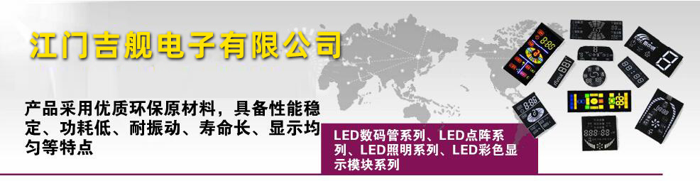 江門吉艦電子有限公司專業(yè)銷售LED數(shù)碼管、點陣 、彩屏等顯示器件、套件及LED照明電子元件。產(chǎn)品采用優(yōu)質(zhì)環(huán)保原材料,具備性能穩(wěn)定、功耗低、耐振動、壽命長、顯示均勻等特點。廣泛應用于家用電器、LED顯示屏、電梯控制、儀器儀表等行業(yè)。江門吉艦電子有限公司憑借對光電行業(yè)豐富的系統(tǒng)經(jīng)驗,贏得了客戶的廣泛認同和贊譽,卓越的產(chǎn)品質(zhì)量、合理的價格深受客戶的好評。